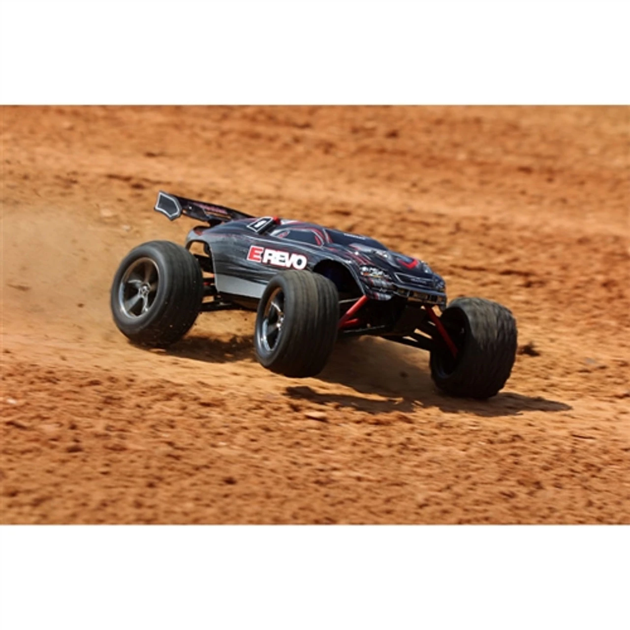 This is the Traxxas 1/16 Scale E-Revo 4WD Ready-to-Run brushed electric radio controlled racing monster truck with ID Battery, DC Peak-Detecting Quick Charger, and TQ 2.4GHz radio. The 1/16 E-Revo is fully assembled with TQ 2.4GHz radio system, Titan 550 motor, XL-2.5 electronic speed control, painted and decaled body, pre-glued tires, and detailed instructions. A Traxxas Power Cell NiMH battery and DC Peak Charger are also included, making the 1/16 E-Revo truly Ready-To-Race. Designed specifically for the high-power needs of Traxxas vehicles, the potent Power Cell pack features heavy-duty construction, and 16-gauge wires for efficient power transfer, run after run. Traxxas backs the 1/16 E-Revo and all of their products with top-notch support that is second to none.