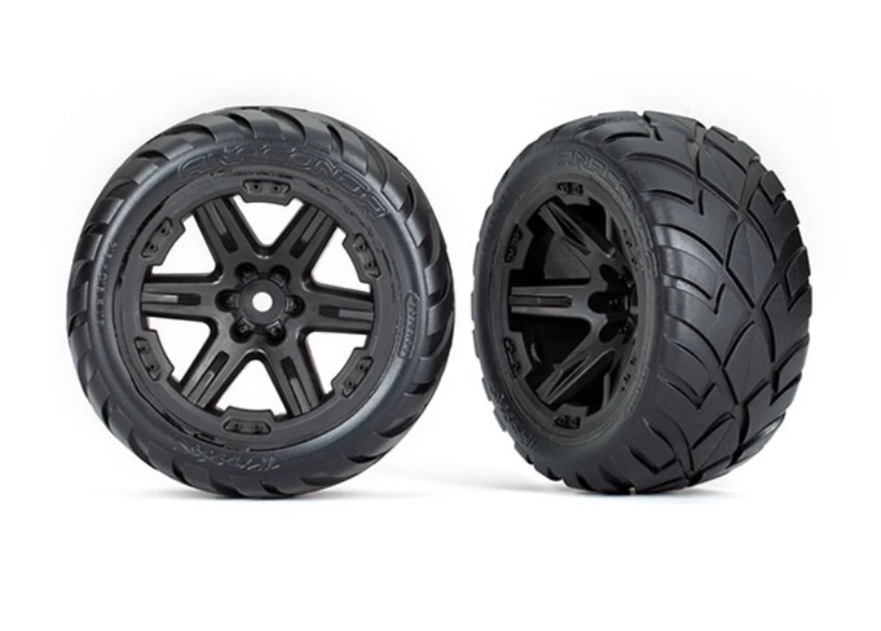 These are the Traxxas 2.8″ Anaconda Wheels, Assembled, RXT Black (4WD F/R, 2WD F) (2)