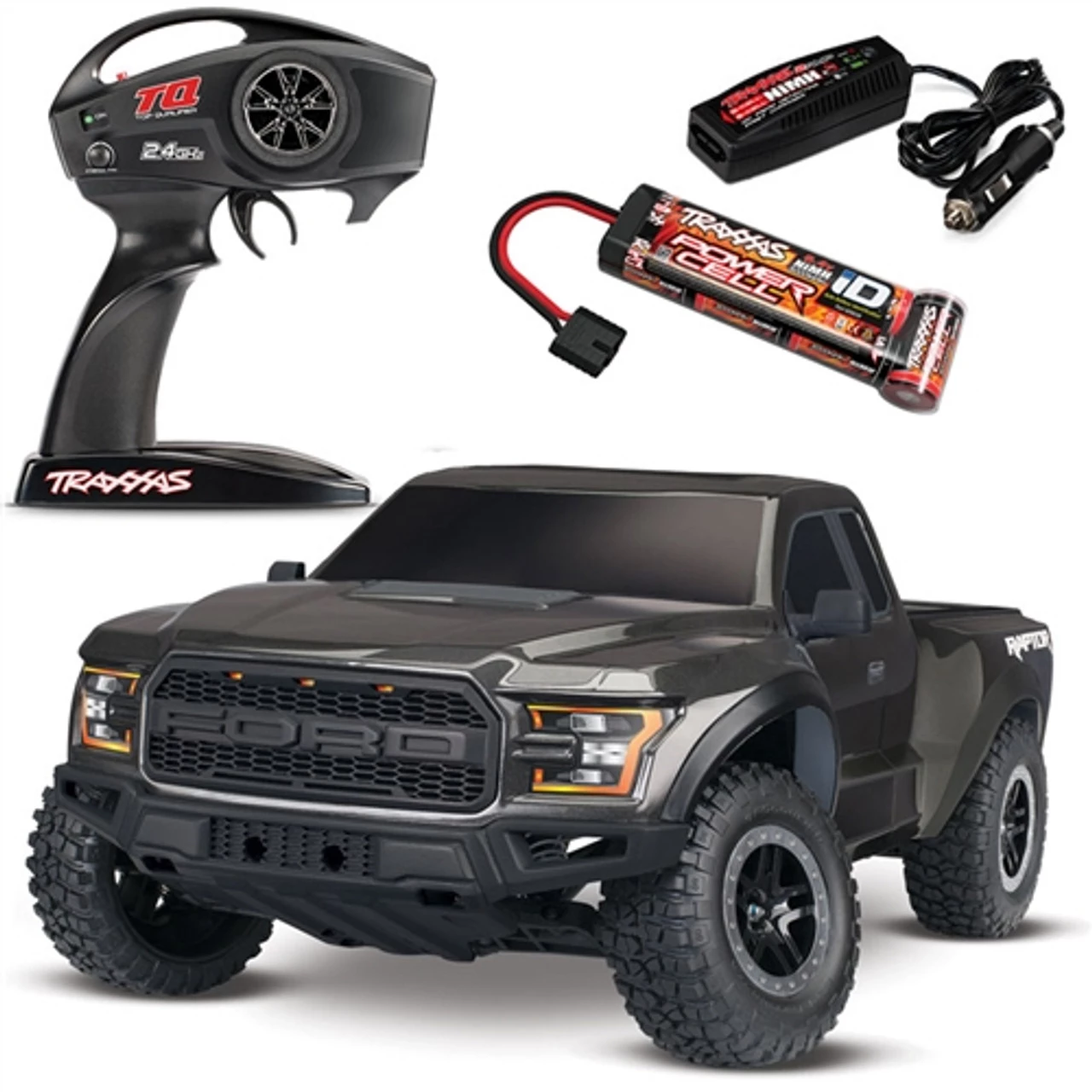 This is the Traxxas 2017 Ford Raptor Slash XL-5 2WD Ready-to-Run. It comes with a Traxxas ID Battery and DC Peak Detecting Quick Charger. The Slash Raptor also comes with a 2.4GHz radio system, waterproof electronics, and a stunning pre-painted 2017 SVT Raptor body. With the included 3000mAh 7-Cell 8.4V NiMH battery pack and 23T pinion gear, the truck is capable of speeds in excess of 30 MPH!