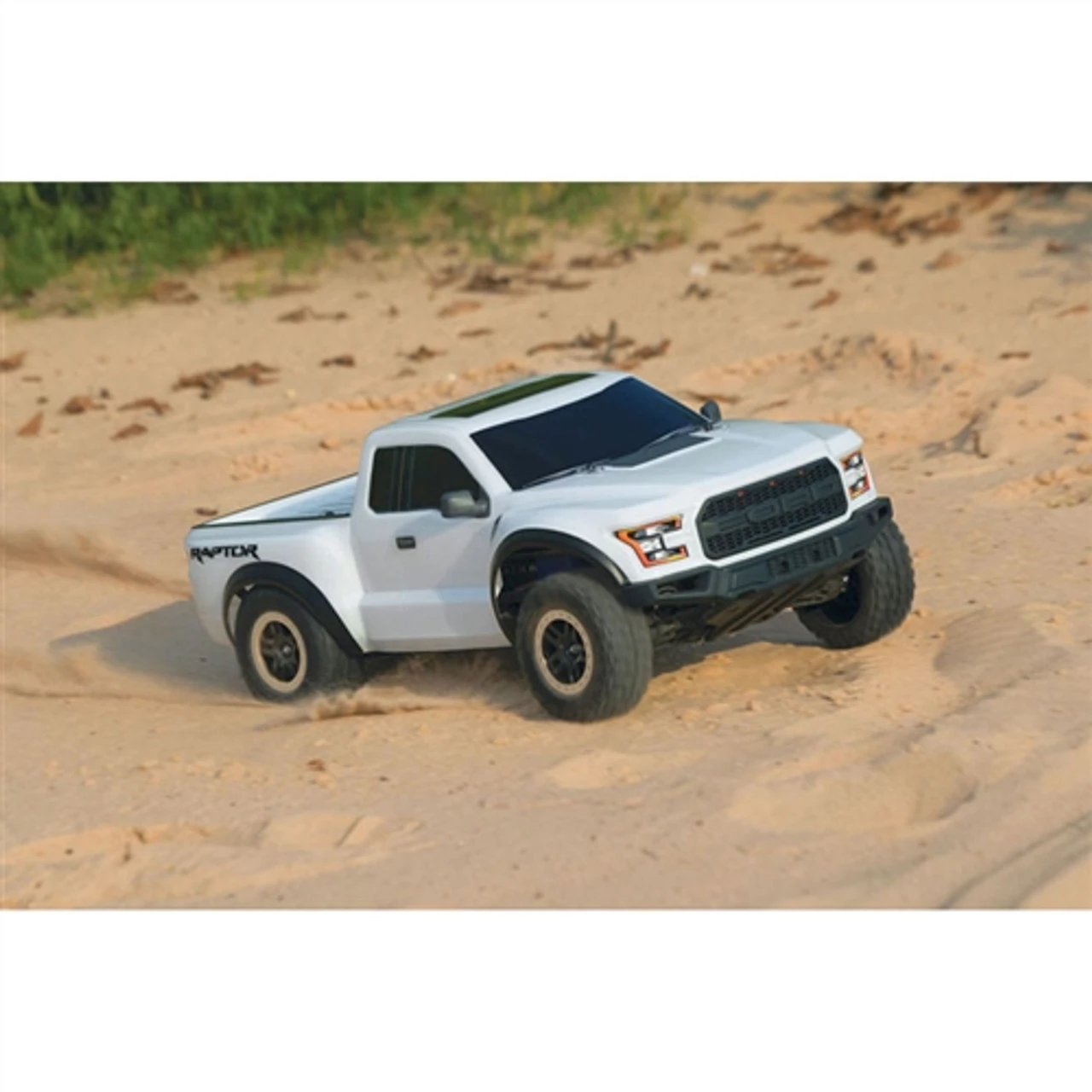 The 2017 Raptor replica is wrapped around the proven performance and unmatched durability of the Traxxas Slash. Torque flows from the powerful Titan 12-Turn motor and XL-5 electronic speed control for instant response off-road. Full-ball bearings enhance precision control. The electronics are all fully waterproof so your fun never gets sidelined by a little water along the way.