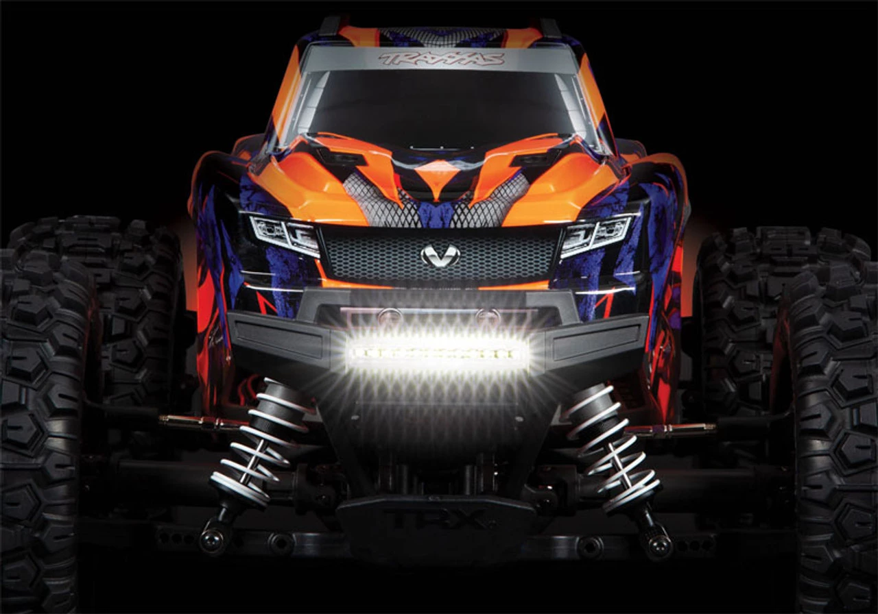 Naturally the Hoss 4X4 LED light kit gives you the same freedom to drive where you want and when you want with Traxxas waterproof technology. The light kit also features a regulated power supply to provide stable lighting performance, without flickering or dimming as battery voltage changes. Installation is easy using the included power tap to feed voltage directly from the battery.