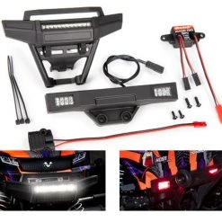 The Traxxas Hoss 4X4 unleashed a new era of extreme monster truck fun and now there’s a LED light kit built to the same standard. Designed to handle the toughest action and most extreme stunts, the Hoss high-output LED light kit extends your adventures long after dark. A front high-intensity light bar integrates into a new rugged front bumper while bright red tail lights flank the wheelie bar in the replacement rear bumper. A chassis-mounted power supply regulates the voltage for reliable lighting performance without dimming or flickering. Naturally, the entire system is fully waterproof to make your all-weather adventures a reality.