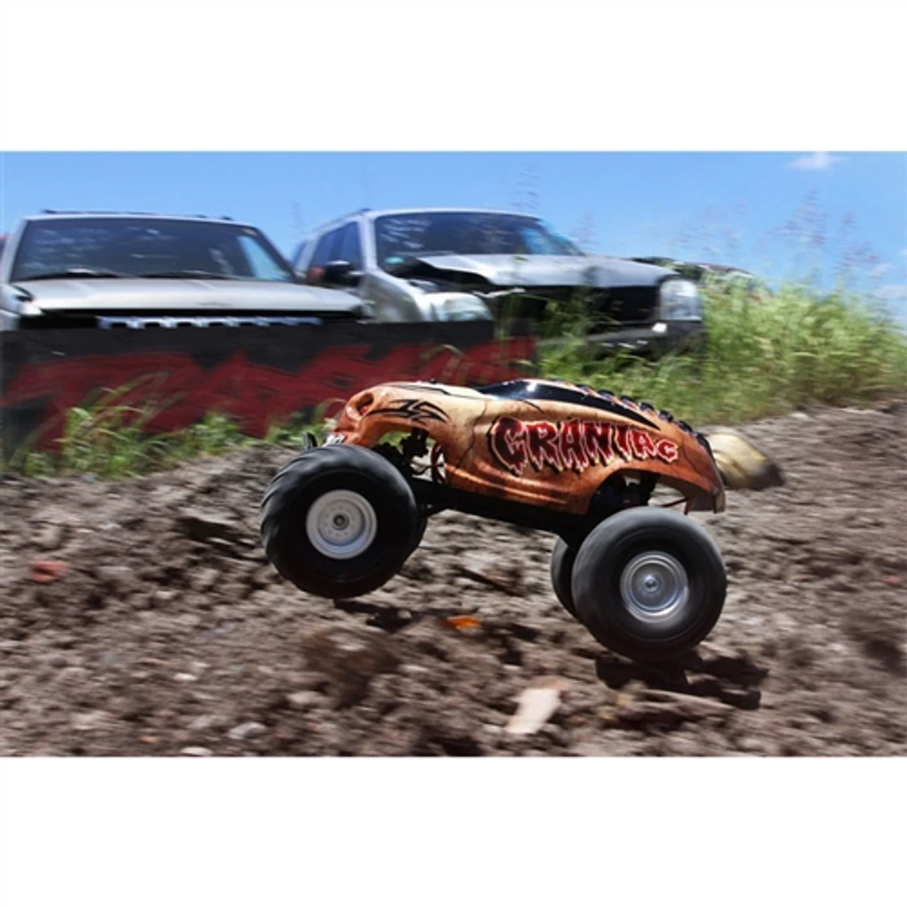 Today, the Craniac has a bold look, innovative features, and of course, more power to boost the fun quotient even higher. Combine the increased horsepower with the tall, drive-over-anything ground clearance; ultra-tough suspension; exclusive waterproof electronics (blast through puddles, mow through mud and shred snow); and easy operation, Craniac will quickly become your favorite for all kinds of monster truck action. Just like the Stampede, the Craniac is at the top in high-performance RC monster trucks.