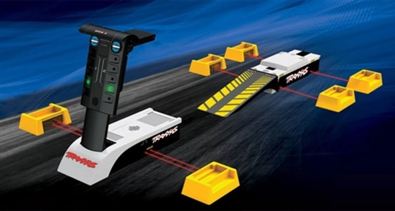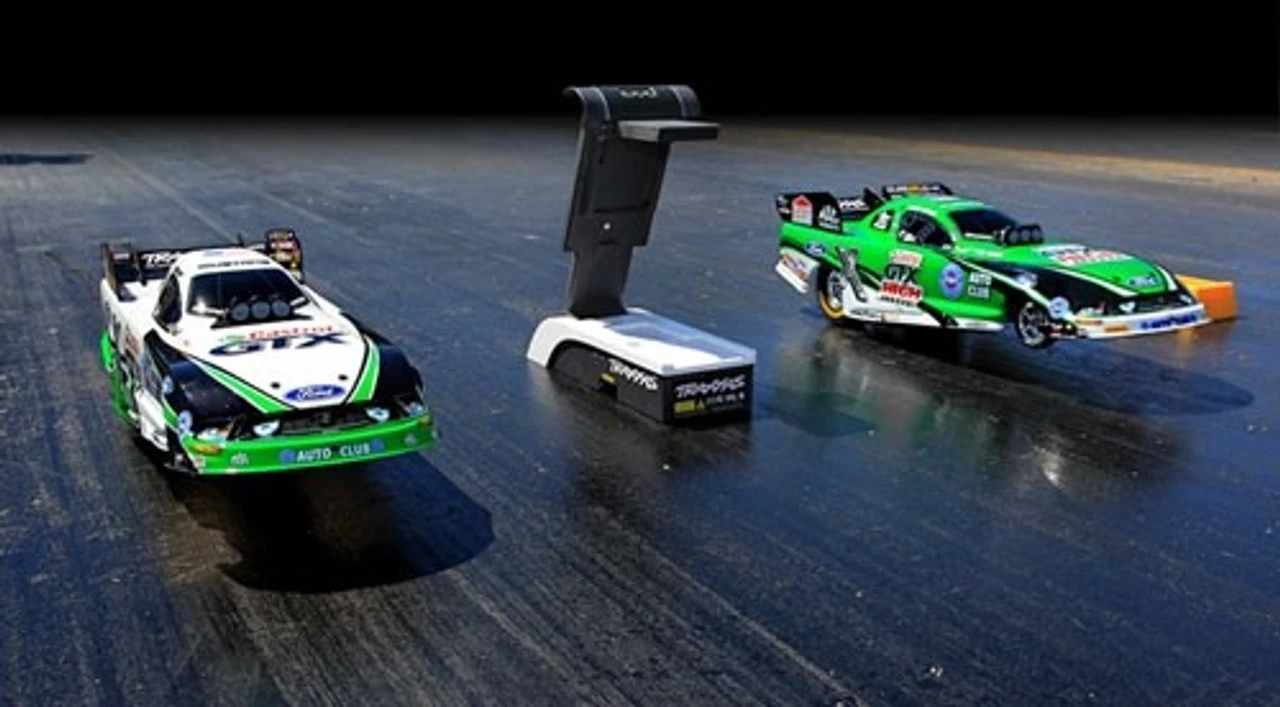 Dual beams on the starting line indicate pre-stage and staged status. The Traxxas NHRA Funny Car (sold separate) is equipped with a staging mode that allows the driver to roll carefully into the beams without having to bend down and stage by hand. Drag races are one and lost by fractions of second on the clock. At the finish line, dual laser beams determine the winner within milliseconds. When you equip your model with the TQi Docking Base and the Traxxas Link app, DTS-1 displays your trap speed through the finish line beams on your iPhone or iPod touch. Adjustment capability is incorporated into the Staging and Finish Line consoles to allow you to compensate for uneven or sloping racing surfaces