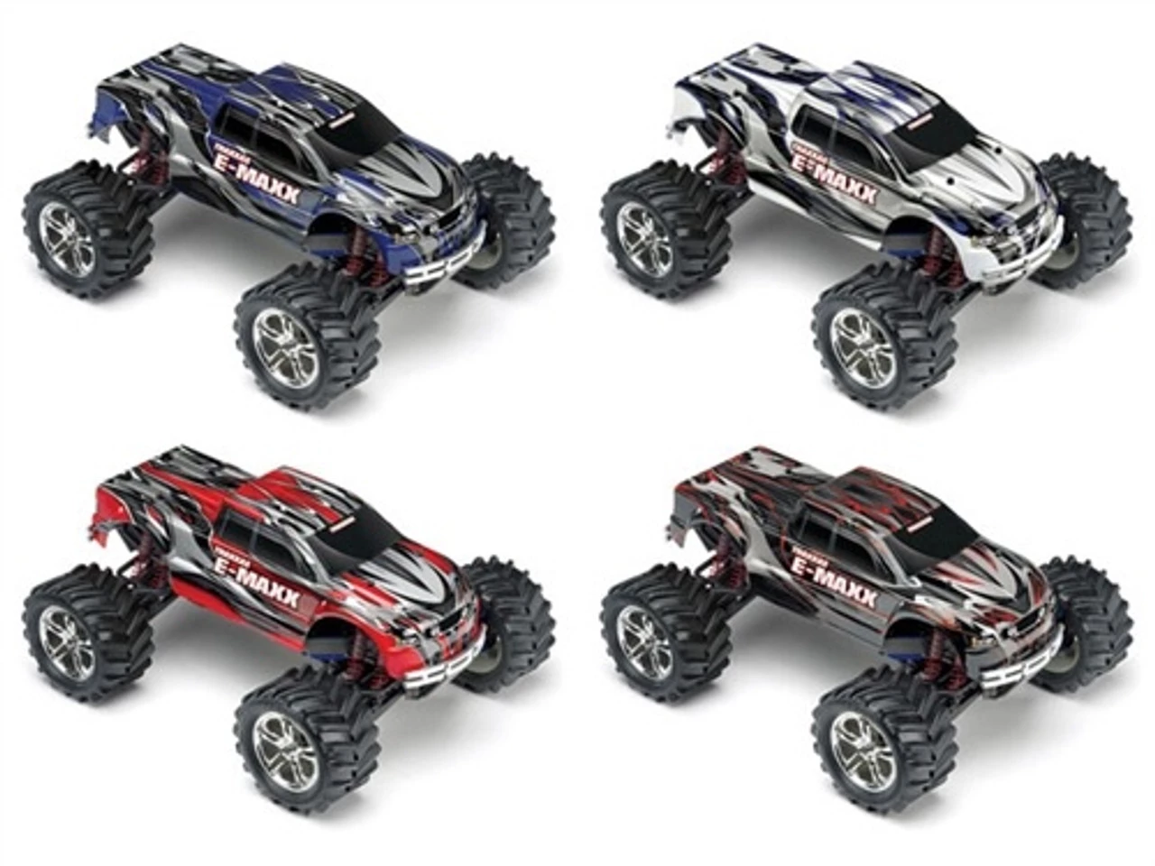 E-Maxx model 39036-4 comes fully-assembled with the TQi 2.4GHz radio system installed and adjusted, EVX-2 power system with Low-Voltage Detection, a painted and decaled body, pre-glued tires, and detailed instructions. Traxxas backs the E-Maxx and all of their products with top-notch support that is second to none. A staff of skilled representatives is on-hand at Traxxas to answer your questions via phone, website, or e-mail. Unmatched parts support allows E-Maxx to be serviced more easily than other brands. Your investment is also protected by the Traxxas Lifetime Electronics Warranty. Traxxas goes the extra mile to ensure that your R/C experience is easy and fun (and fast!).