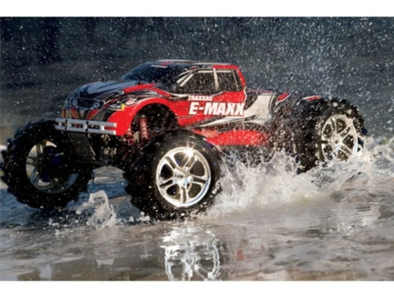 E-Maxx is equipped with sealed electronics that eliminate boundaries and let you drive where you want to drive. E-Maxx lets you blaze new trails through water, mud, snow and other wet-running conditions that wouldn’t have been possible before. Since water is no longer the enemy, E-Maxx opens up a whole new world of 4×4 adventure and fun.