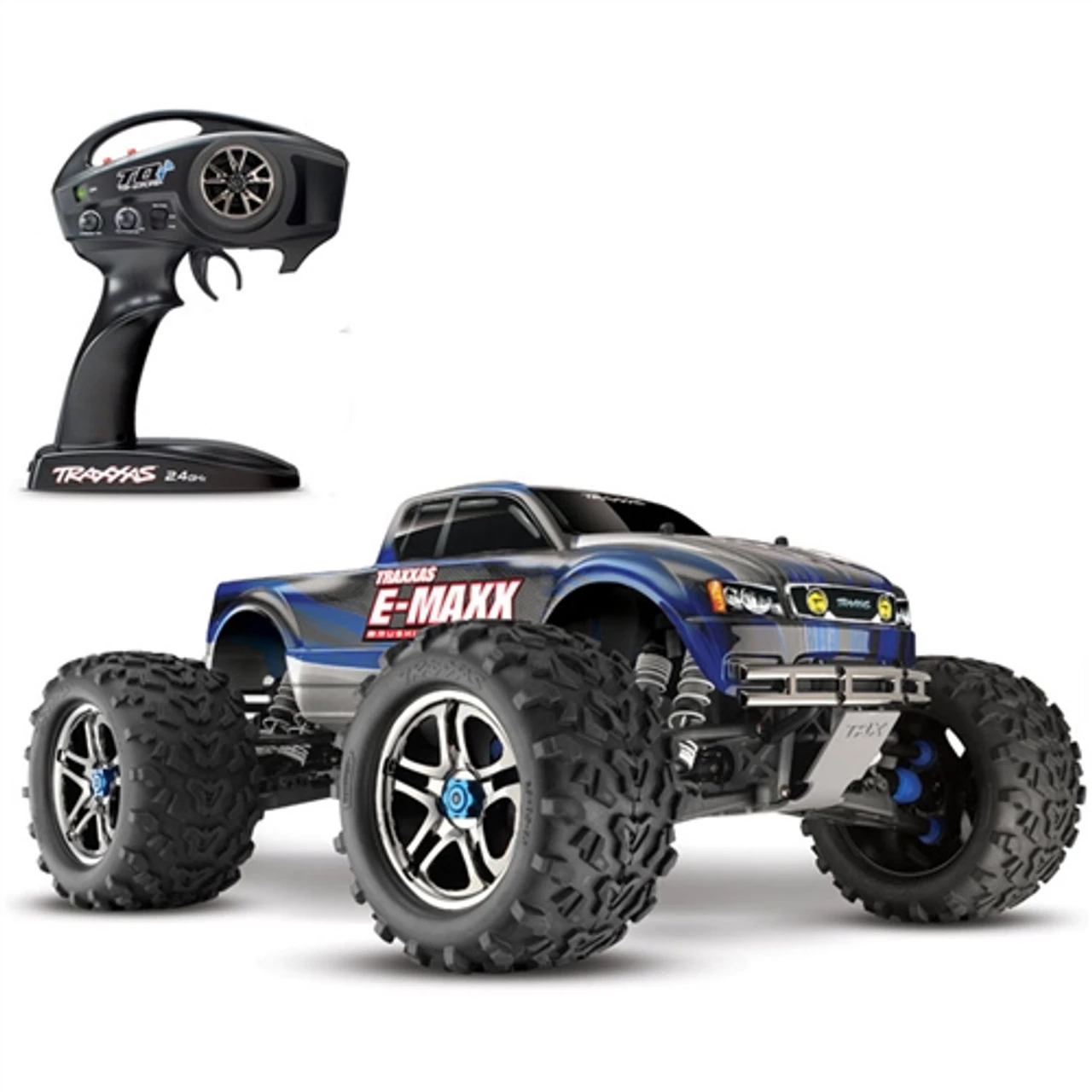 E-Maxx Brushless Edition (model #39086-4) comes fully-assembled and Ready-To-Race with the TQi 2.4GHz radio system with Traxxas Stability Management Traxxas, Self-Righting, MXL-6s brushless power system, a painted and decaled body, pre-glued tires, and Quick Start Guide. Traxxas backs the E-Maxx Brushless Edition and all of their products with top-notch support that is second to none. A staff of skilled representatives is on-hand at Traxxas to answer your questions via phone, website, or e-mail. Unmatched parts support allows E-Maxx Brushless Edition to be serviced easily. Traxxas goes the extra mile to ensure that your R/C experience is easy and fun (and fast!).