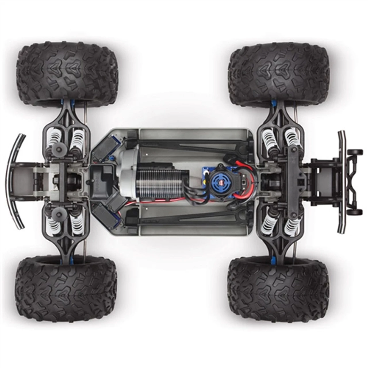 E-Maxx Brushless Edition is equipped with the world’s most advanced Ready-To-Race radio system. The all-new Traxxas TQi arrives with a full complement of tuning features and offers the unbeatable convenience of “no channels, no crystals” 2.4GHz technology – but that’s just the beginning. Automatic model recognition instantly recalls your settings for up to 30 Traxxas Link-enabled models. Just switch on and drive, no naming or “model memory” settings required. Power up the transmitter and the model you want to drive, and the settings for that model are dialed in immediately! The new TQi 2.4GHz transmitter is fully adjustable: steering and throttle end points can be set precisely, and the Multi-Function knob can be programmed to control Steering Sensitivity (Expo), Throttle Sensitivity (Expo), Steering Percentage (Dual Rate), Braking Percentage (Dual Rate), or Throttle Trim. TQi’s ergonomic case design provides all-day driving comfort, and the unique internal antenna contributes to its sleek, modern look.