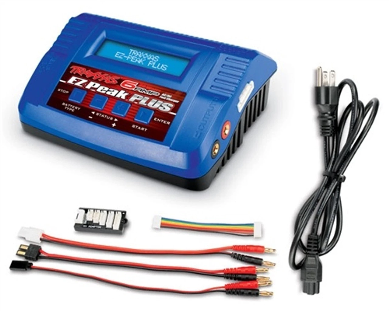 This is the Traxxas EZ-Peak Plus AC/DC battery charger. The Traxxas EZ-Peak Plus is a fully-programmable AC/DC charger designed for fast and easy charging of LiPo, LiFe, LiIon, NiMH, NiCd, and even lead-acid battery packs. Charger includes leads for charging batteries with Tamiya, Traxxas high-current, and receiver pack connectors. It also comes with the 2-6S balance board and JST-XH balance harness.
