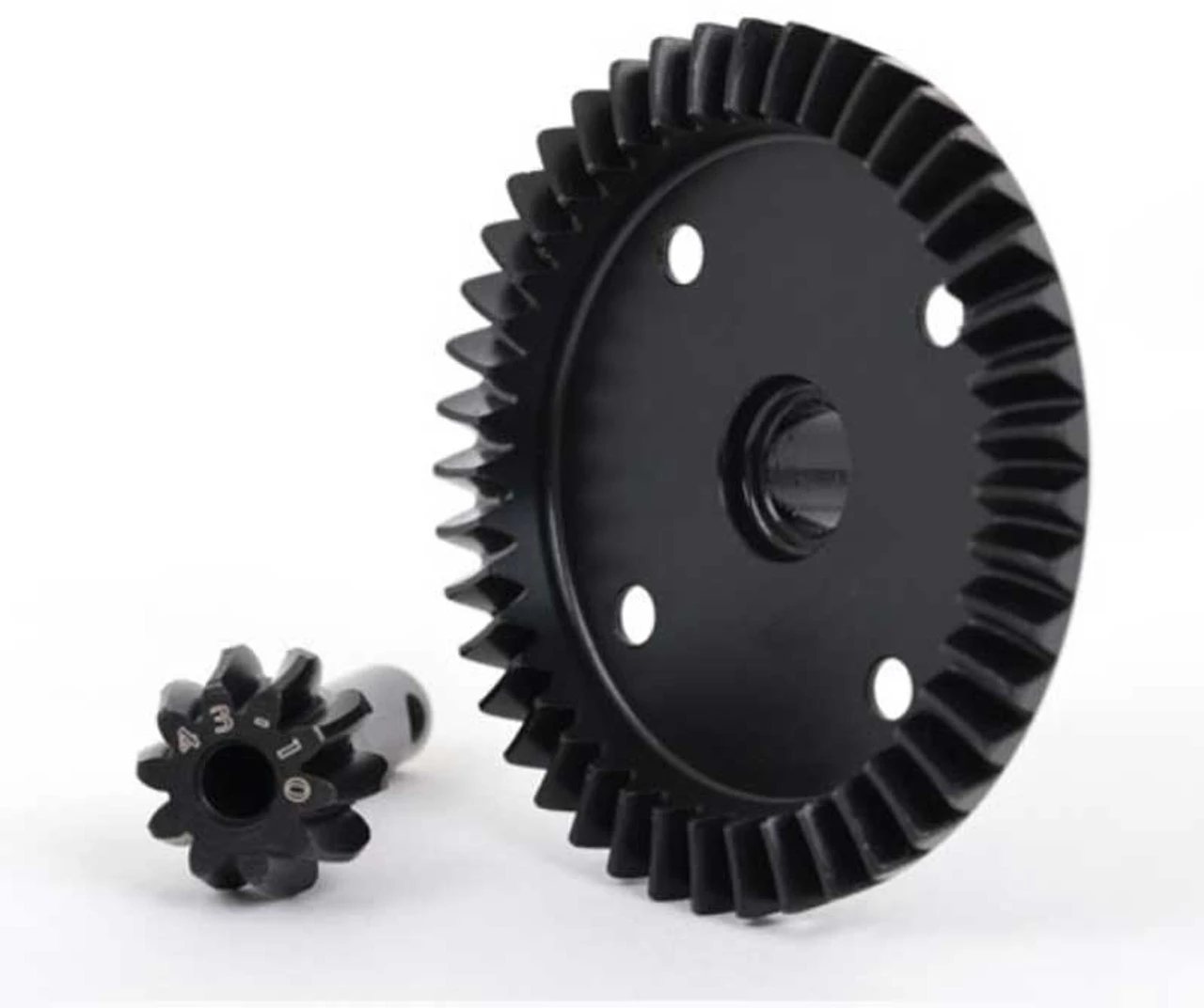 Made for the most extreme action, spiral-cut 43-tooth ring and 10-tooth pinion differential gear sets are CNC-machined from a solid block of steel. The teeth are cut with a slight curve to minimize backlash between gears and maximize tooth traction with more surface area than straight-cut gears.
