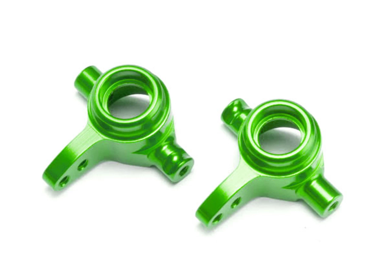 These are the Traxxas Green 6061-T6 Aluminum Steering Blocks for 1/10 Slash 4×4, Stampede 4×4, and Rustler 4×4 vehicles.