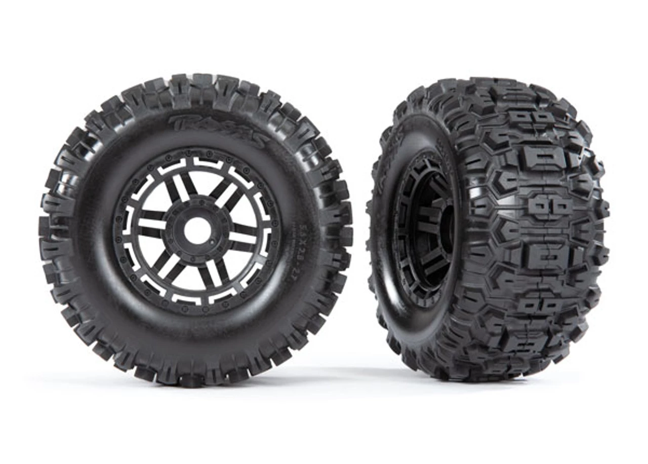 Traxxas Maxx 4S Sledgehammer Tires on Black Wheels 17mm Splined Hex (2)