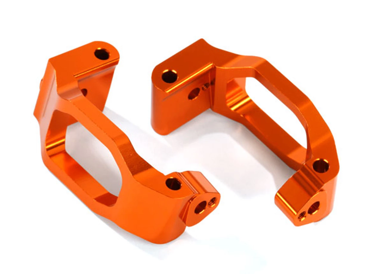These are the Traxxas Maxx Orange 6061-T6 Aluminum Caster Blocks (C-Hubs) with 4x22mm Pins (4), 3x6mm Buttonhead Capscrews (4), and Retainers (4).
