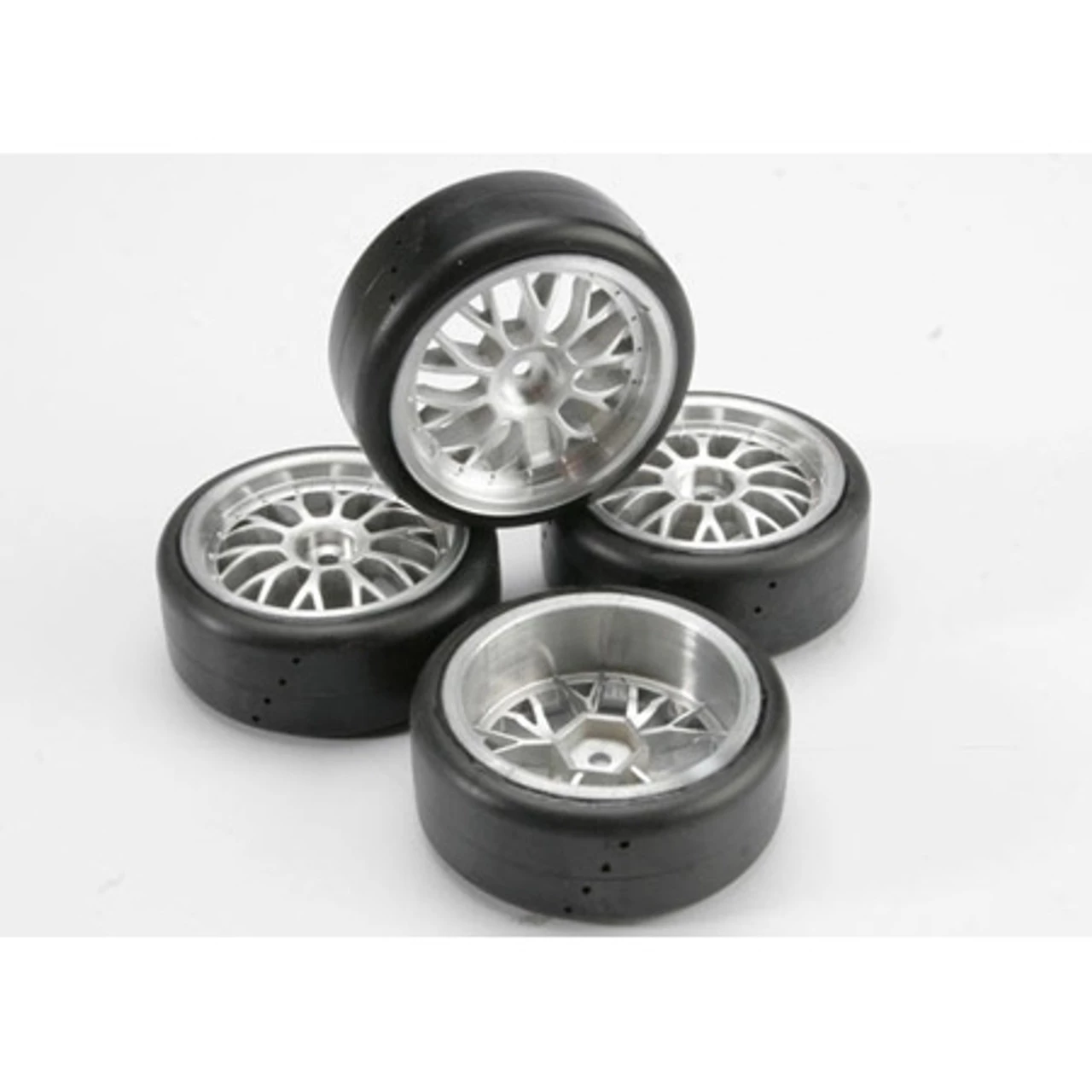 These durable Traxxas 2.0 mesh wheels for the Nitro 4-Tec fit all popular on-road touring sedans. They come with superb pre-glued racing tires with contoured molded foam inserts. Their lower profile increases sidewall strength and contact patch. The 10-fork design and realistic aluminum finish will enhance the look of any tourer. Packaged in sets of four for convenience and economy