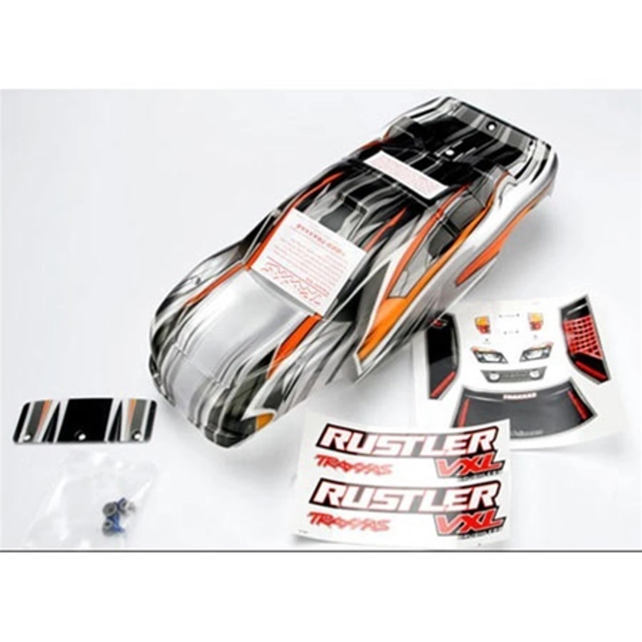 This is the Traxxas ProGraphix trimmed body for the Traxxas Rustler VXL. Graphics are pre-applied, so you just need to apply a single color of paint to finish to your liking.