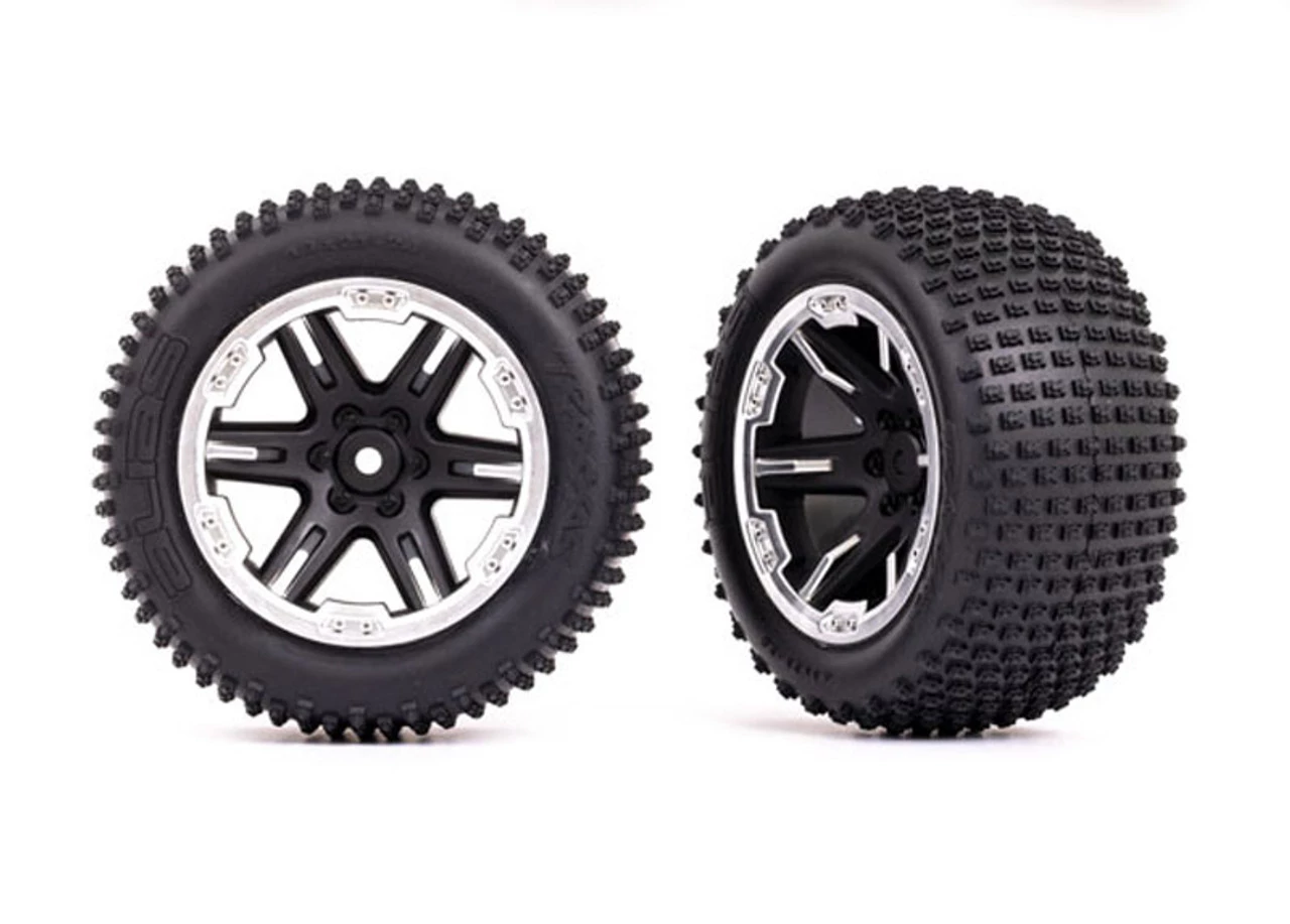 This is the Traxxas Rear Alias 2.8′ TSM Rated Assembled, Glued Tires w/Foam Inserts – RXT Black & Satin Wheels: Rustler 2WD.