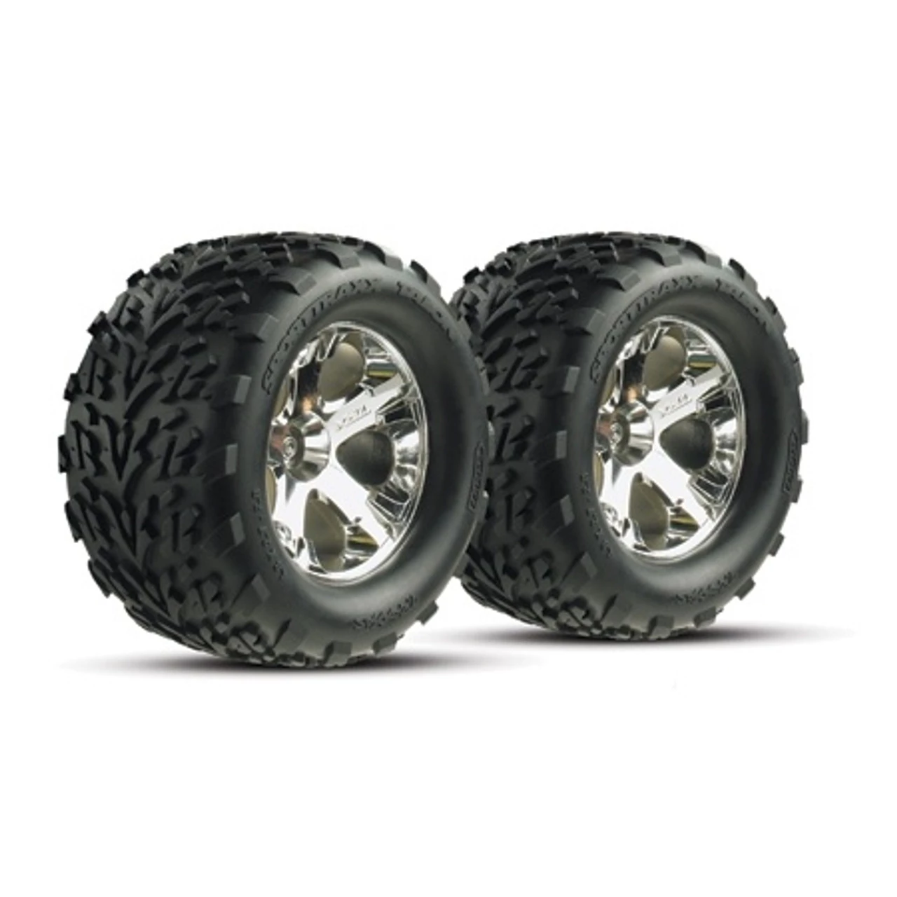These are the Traxxas All-Star Chrome Wheels with Talon Tires for the rear of the Stampede.
