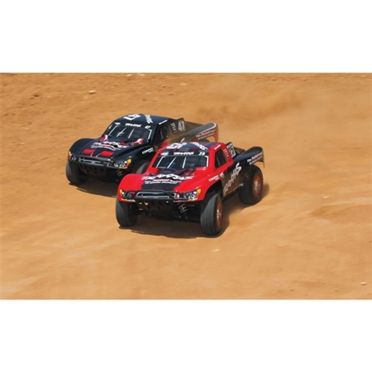 Grab the throttle and the On-Board Audio System roars to life, projecting the actual engine sounds from a 900+ horsepower Pro 4X4 short course truck. Prepare to experience the beat of every piston stroke, feel the gear shifts under acceleration, and hear the horsepower as the RPM’s scream through the power band. Bash it, crash it, and get it wet. No need to hold back…the sound system is just as rugged as the Slash itself. Flip the rocker switch on the supplied 3-channel TQi 2.4 GHz transmitter to put the truck in neutral to rev up the engine. The precision audio and throttle response connects you to the truck for a whole new driving experience. Traxxas On-Board Audio is the exciting new dimension in Radio Controlled fun!