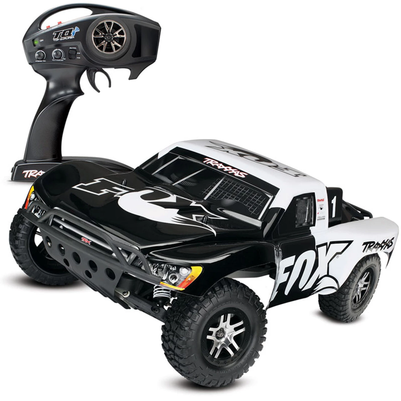 Traxxas Slash is equipped with the world’s most advanced Ready-To-Race radio system. The all-new Traxxas TQi arrives with a full complement of tuning features and offers the unbeatable convenience of “no channels, no crystals” 2.4GHz technology – but that’s just the beginning. Automatic model recognition instantly recalls your settings for up to 30 Traxxas Link-enabled models. Just switch on and drive, no naming or “model memory” settings required. Power up the transmitter and the model you want to drive, and the settings for that model are dialed in immediately! The new TQi 2.4GHz transmitter is fully adjustable: steering and throttle end points can be set precisely, and the Multi-Function knob can be programmed to control Steering Sensitivity (Expo), Throttle Sensitivity (Expo), Steering Percentage (Dual Rate), Braking Percentage (Dual Rate), or Throttle Trim. TQi’s ergonomic case design provides all-day driving comfort, and the unique internal antenna contributes to its sleek, modern look.