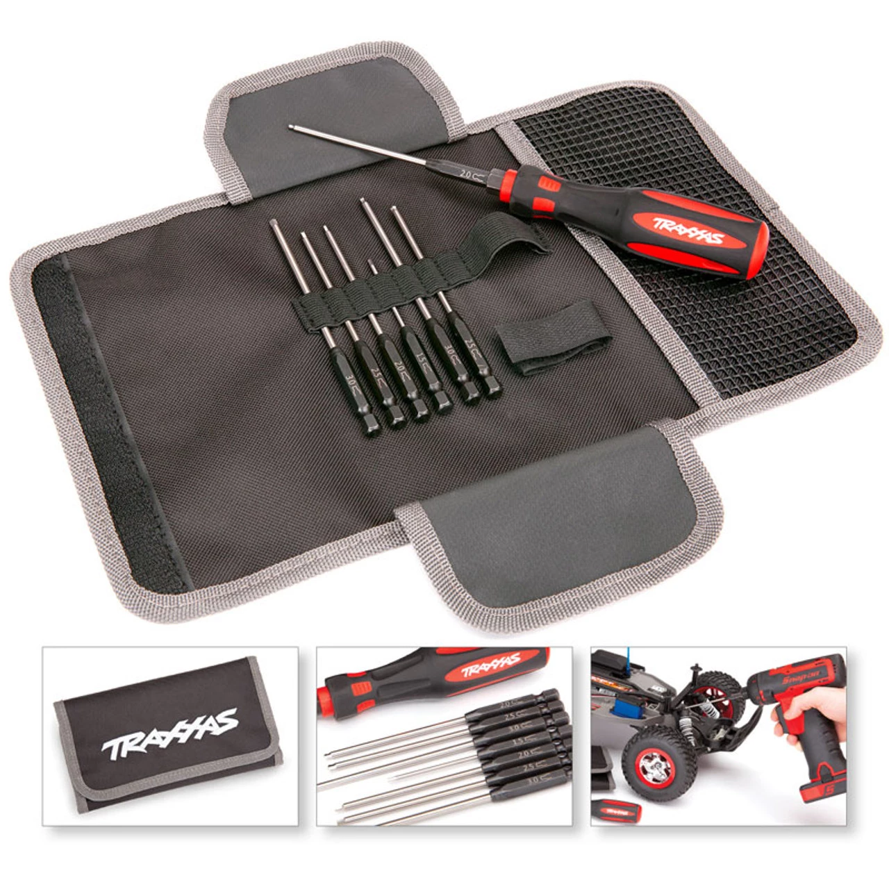 The included rubber overmolded handle holds the bits securely with a powerful magnet for fast bit changes. Headed to the track? Don’t worry, the included heavy-duty tool pouch keeps everything secure for traveling. Pick up any of the Premium Metric Speed Bit Sets and get wrenching with the only tools guaranteed to be Traxxas Tough.