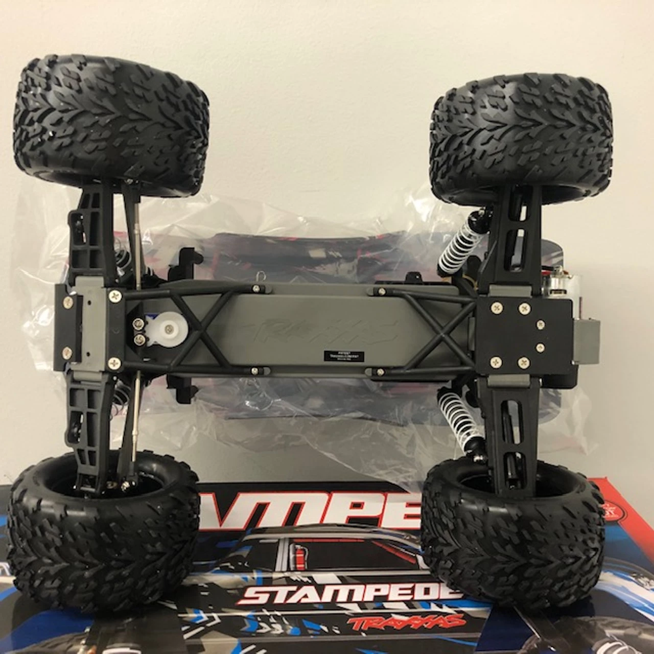 Today, the Stampede has a bold look, innovative features, and of course, more power to boost the fun quotient even higher. Combine the increased horsepower with the tall, drive-over-anything ground clearance; ultra-tough suspension; exclusive waterproof electronics (blast through puddles, mow through mud and shred snow); and easy operation, Stampede will quickly become your favorite for all kinds of monster truck action. Stampede is still the first name in high-performance monster trucks.