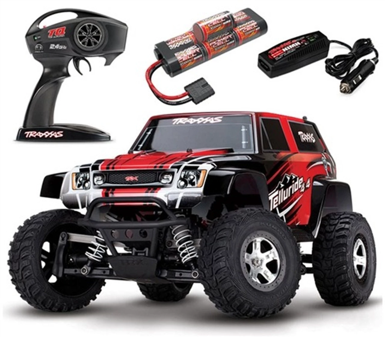 The Telluride 4X4 comes fully-assembled and Ready-To-Drive with the TQ 2.4GHz radio system installed and adjusted, high-performance XL-5 power system, a painted and decaled body, pre-glued tires, and detailed instructions. Traxxas backs the Telluride 4X4 with top-notch support that is second to none. A staff of skilled representatives is on-hand to answer your questions via phone, website, or e-mail. Unmatched parts support allows the Telluride 4X4 to be serviced with parts and support from thousands of hobby dealers worldwide.Your investment is also protected by the Traxxas Lifetime Electronics Warranty. Traxxas goes the extra mile to ensure that your R/C experience is easy and fun (and fast!).