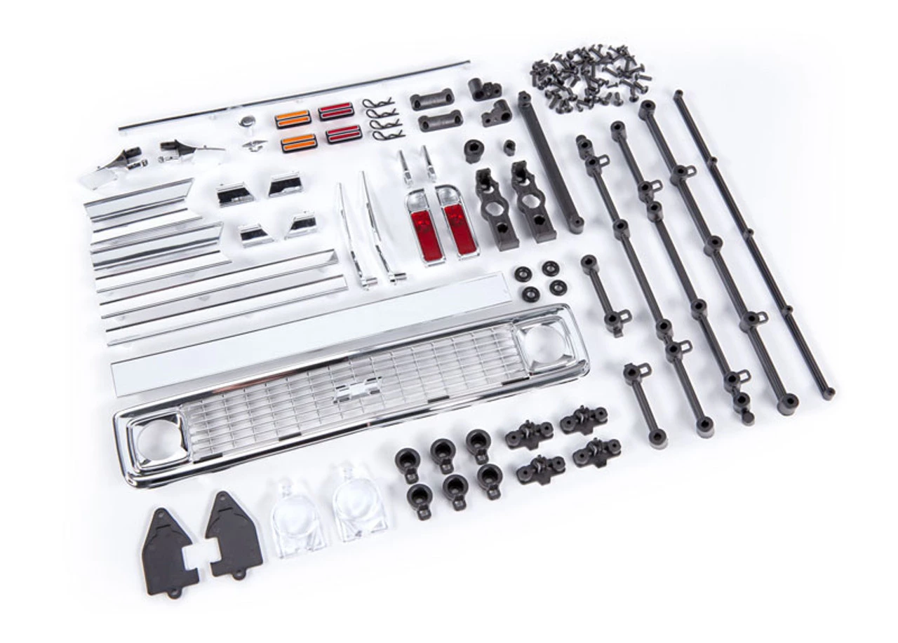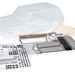 This is the Traxxas TRX-4 (1972) Chevrolet Blazer Clear Body (Requires Painting). It includes the grille, side mirrors, side trim, door handles, windshield wipers, decals and window masks.