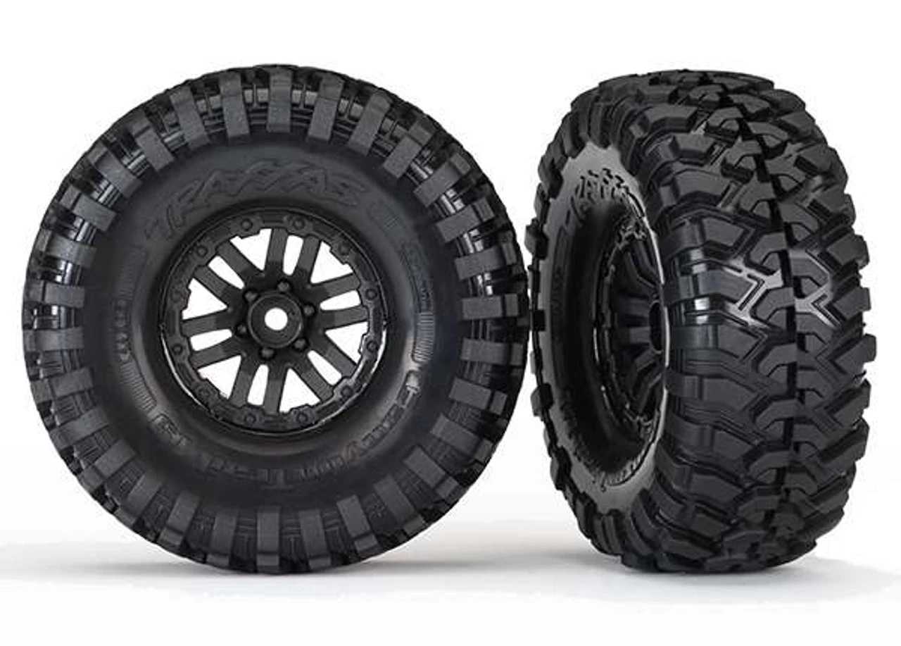 These are the Traxxas TRX-4 Scale Crawler Pre-Glued Canyon Tires on 1.9 Wheels with 12mm hex. The tires are made of soft S1 Compound rubber.