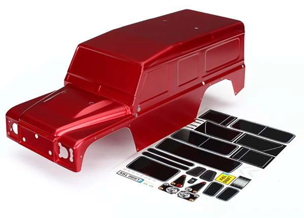 This is the Traxxas TRX-4 Red Land Rover Defender Painted Body with Decals.