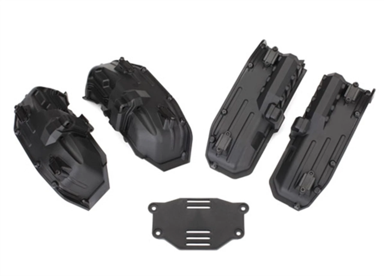 These are the Traxxas TRX-4 Sport Narrow Front and Rear Inner Fenders with Rock Light Covers, Battery Plate, and 3×8 flathead screws (4).