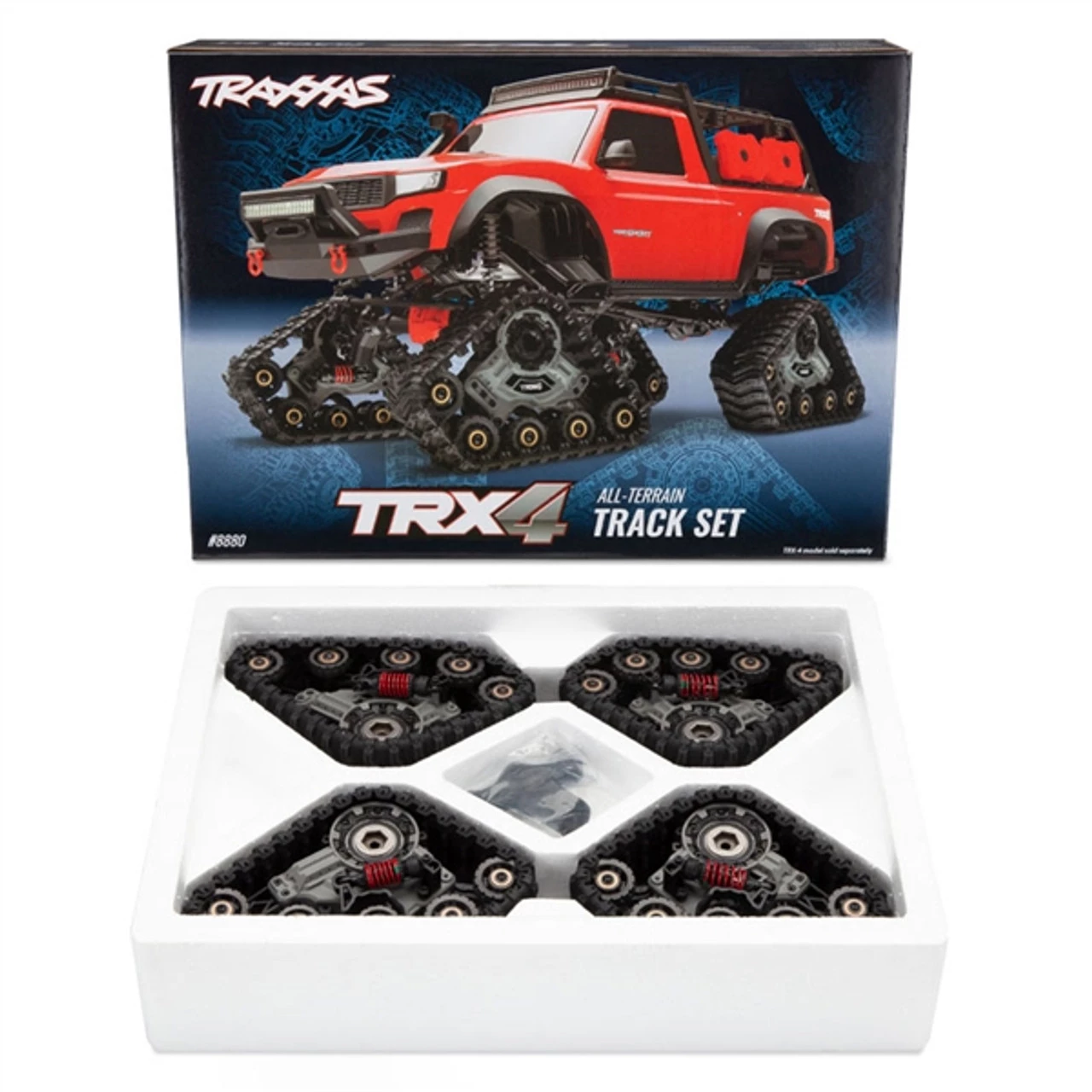 This is the Traxxas TRX-4 Traxx Complete Front and Rear Deep Tread All-Terrain Track Set. This is a complete set of four tracks, giving you unbeatable traction on mud, sand, and snow. These are compatible with all TRX-4 models. See recommendations below for best performance.