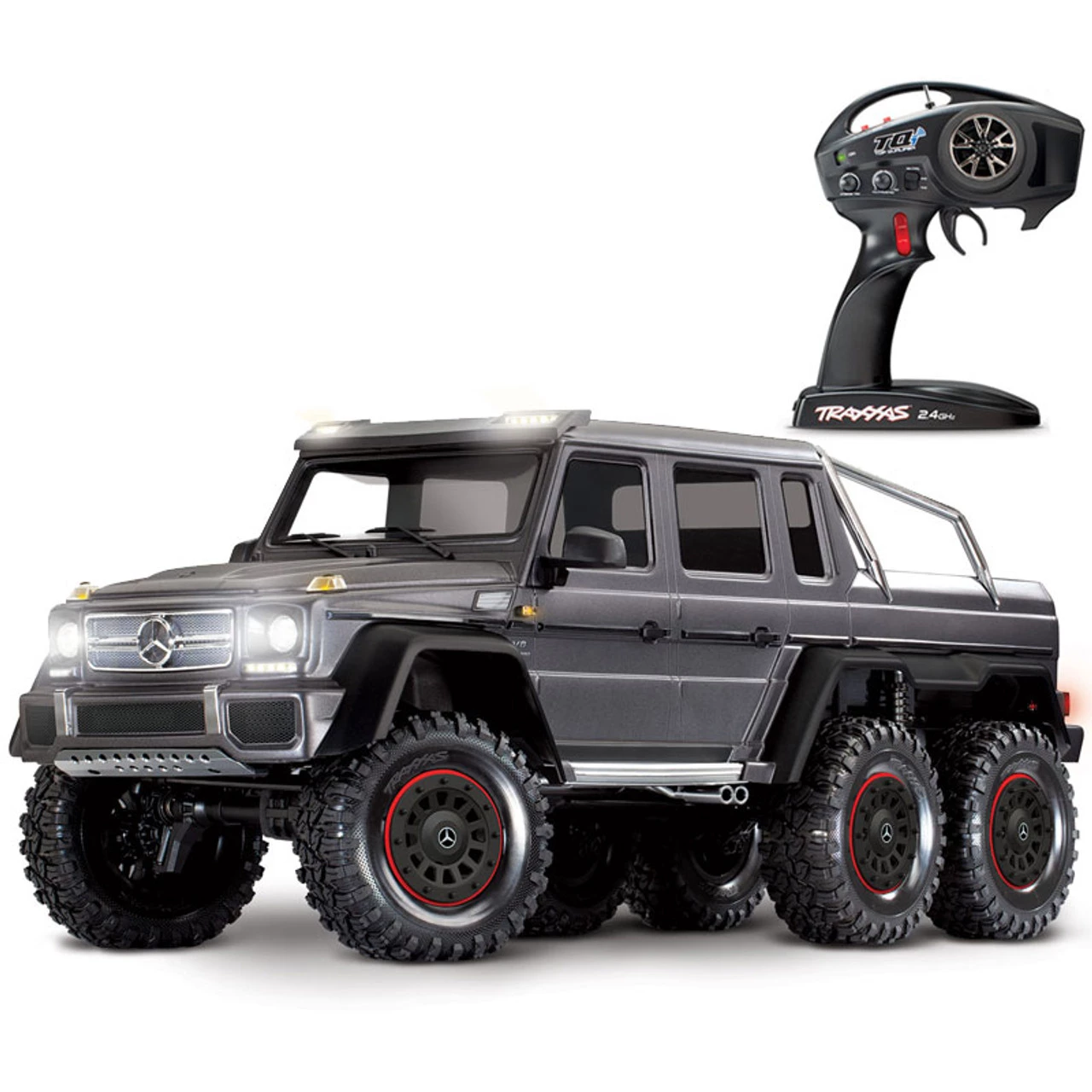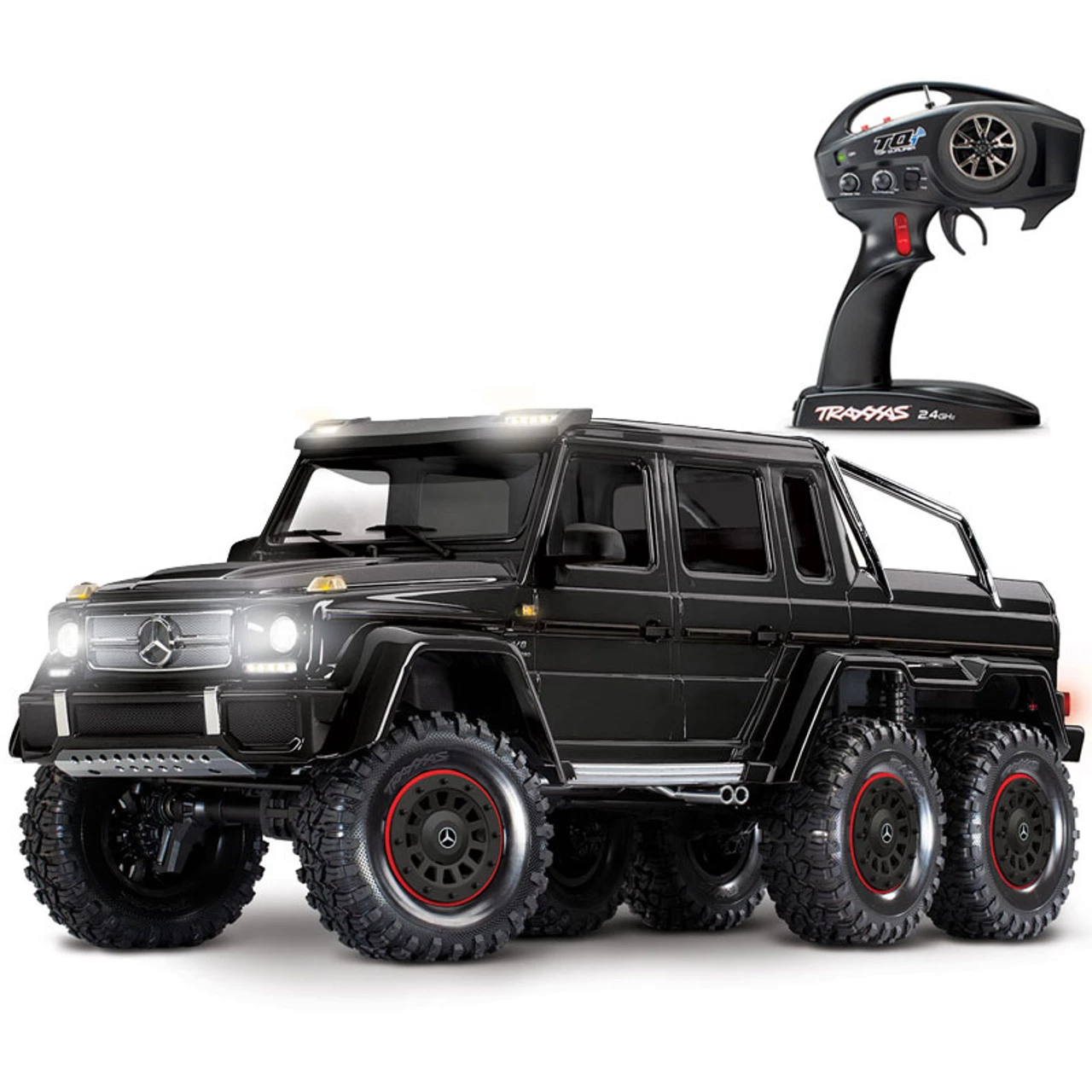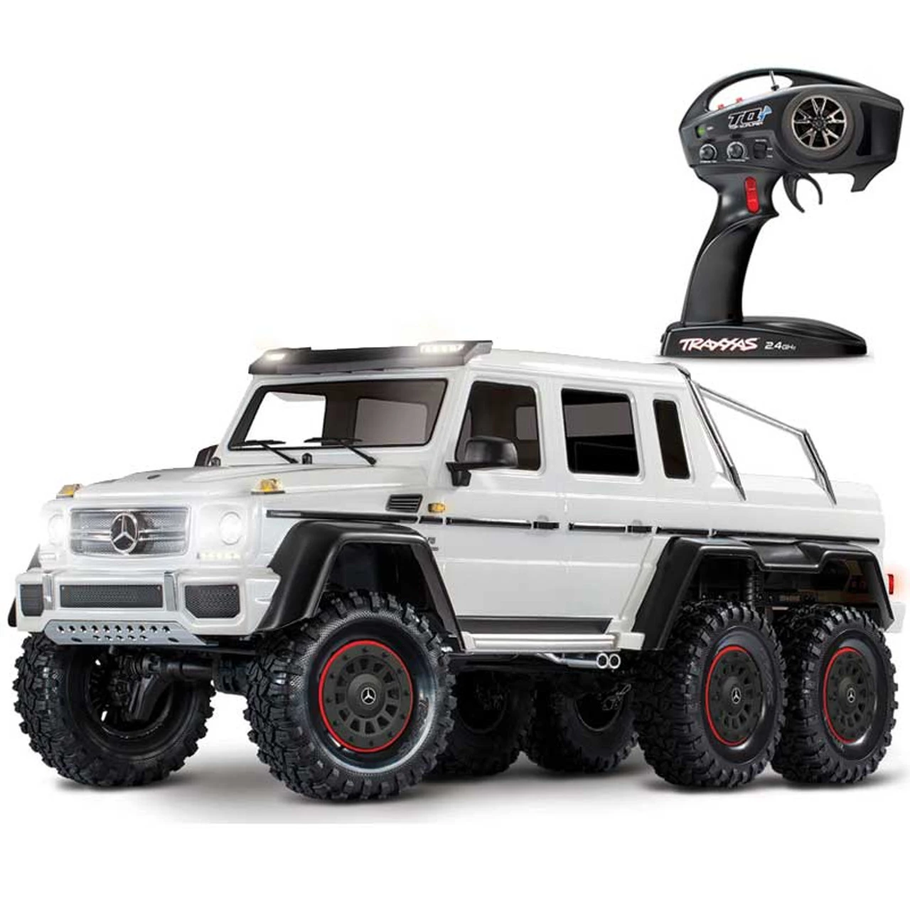 This is the Traxxas TRX-6 Mercedes-Benz G63 6×6 Scale and Trail RTR RC Crawler. This epic, officially-licensed replica of the G63 was done right. Based on the toughest factory all-terrain vehicle ever built, the new TRX-6 features full 6-wheel drive, three remote-locking diffs, portal axles, high/low transmission, and factory-installed LED lighting to top off the spectacular body.
