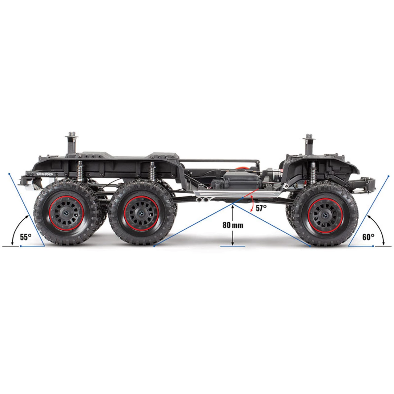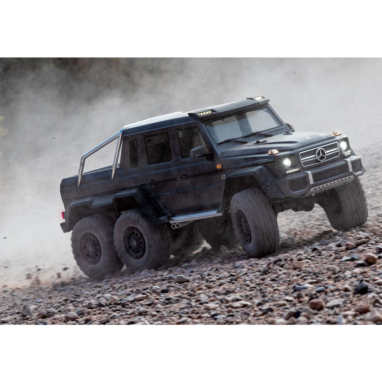 The TRX-6 Mercedes-Benz G 63 AMG 6×6 faithfully reproduces one of the most exclusive and recognizable all-terrain vehicles ever created. Chrome accents, molded trim, and finely detailed lighting elements highlight the rich metallic paint. Traxxas’ uncompromising attention to detail elevates the TRX-6 to the ultimate expression of beauty and brawn.