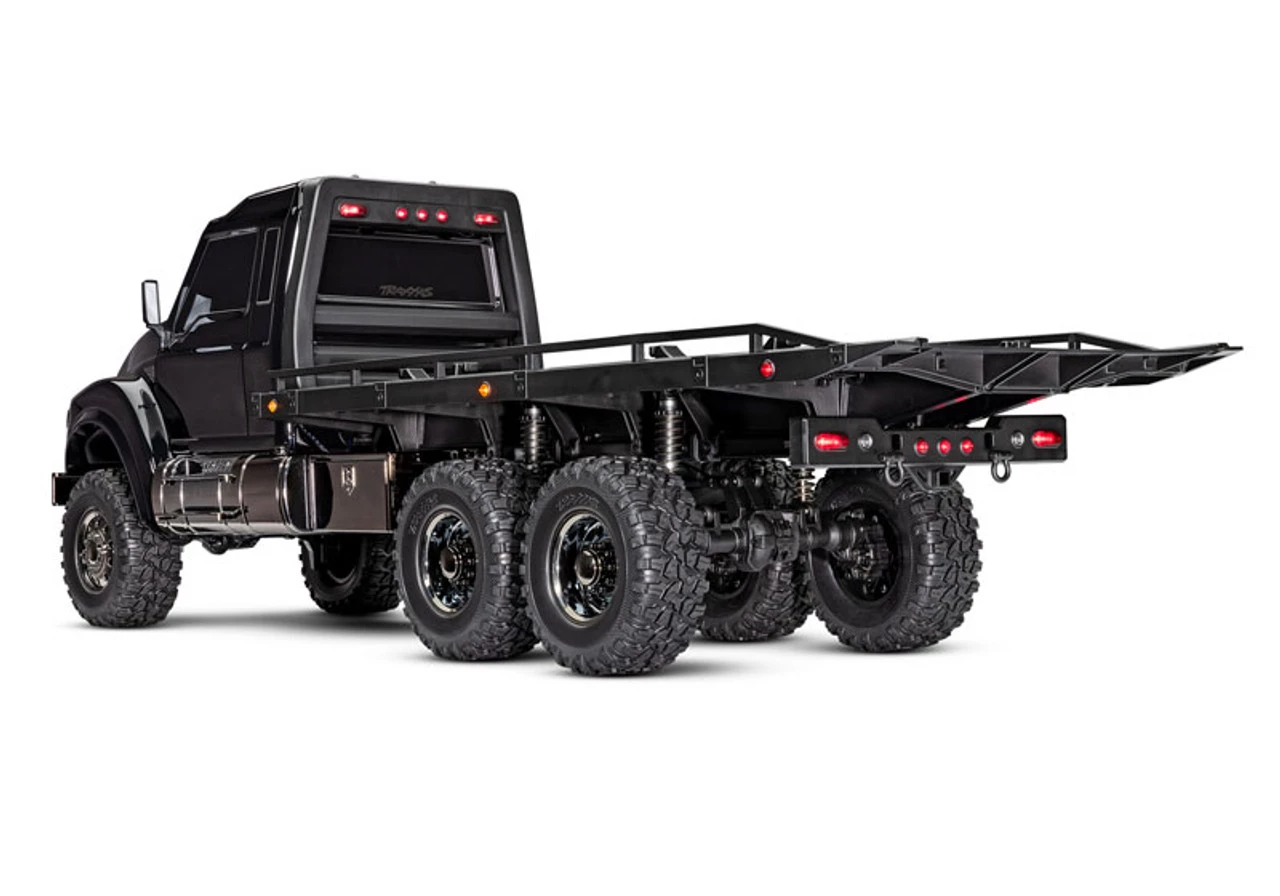 The Ultimate RC Hauler is the largest TRX-6 model with an extra long 23.7″ (603mm) wheelbase and oversize bed to haul your 4-Tec models in style. The highly detailed truck features deep gloss black paint over molded black chrome body accessories for an intimidating look to match its big rig attitude.