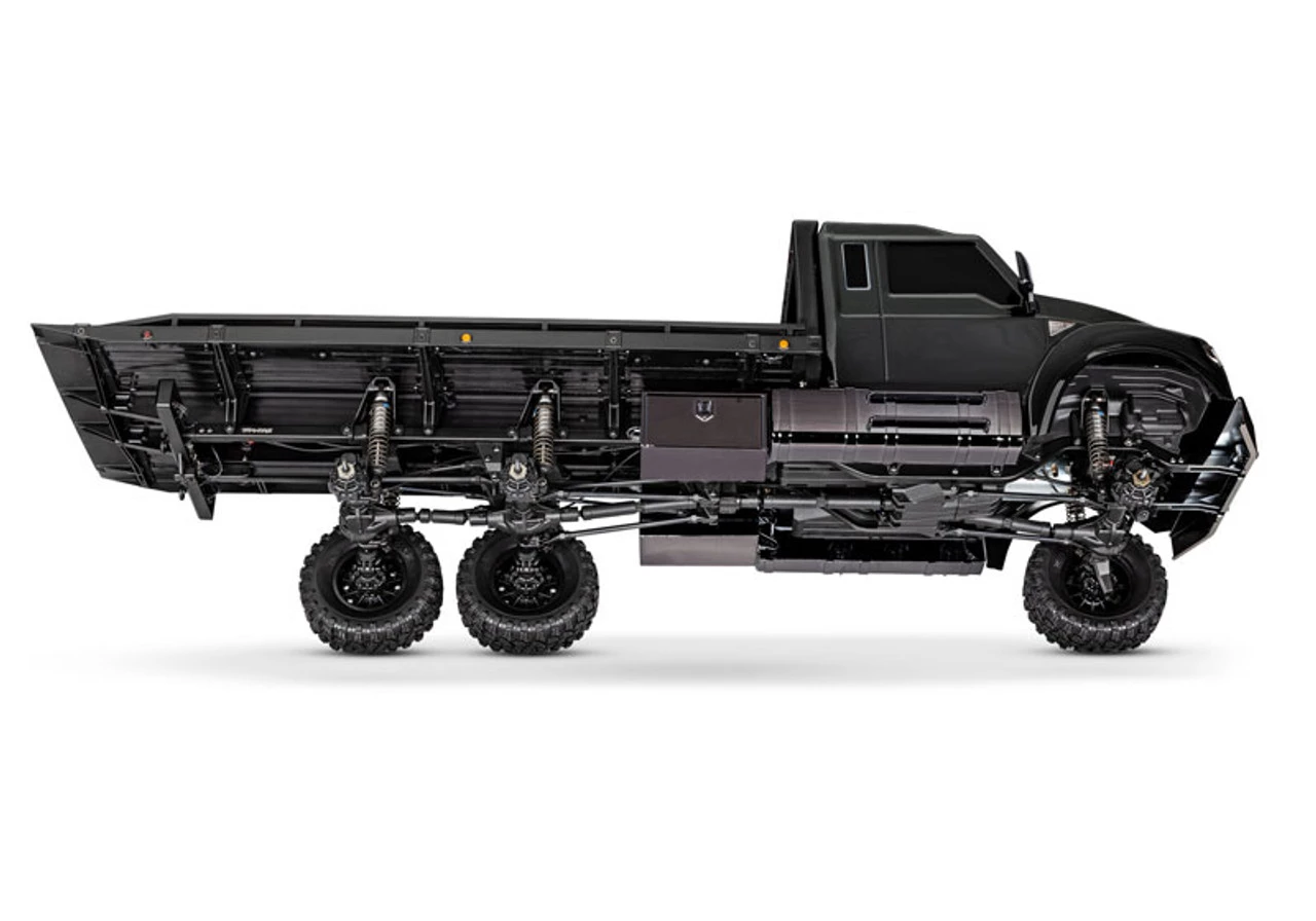 Built on the supremely capable TRX-6 platform, the Ultimate RC Hauler uses six drive wheels to get into the action with trail-conquering grip of three remote-locking T-Lock differentials to get back out. A remote-shifting high/low range transmission amplifies the motor’s torque down low to move heavy loads while still providing ample cruising speed when unloaded.