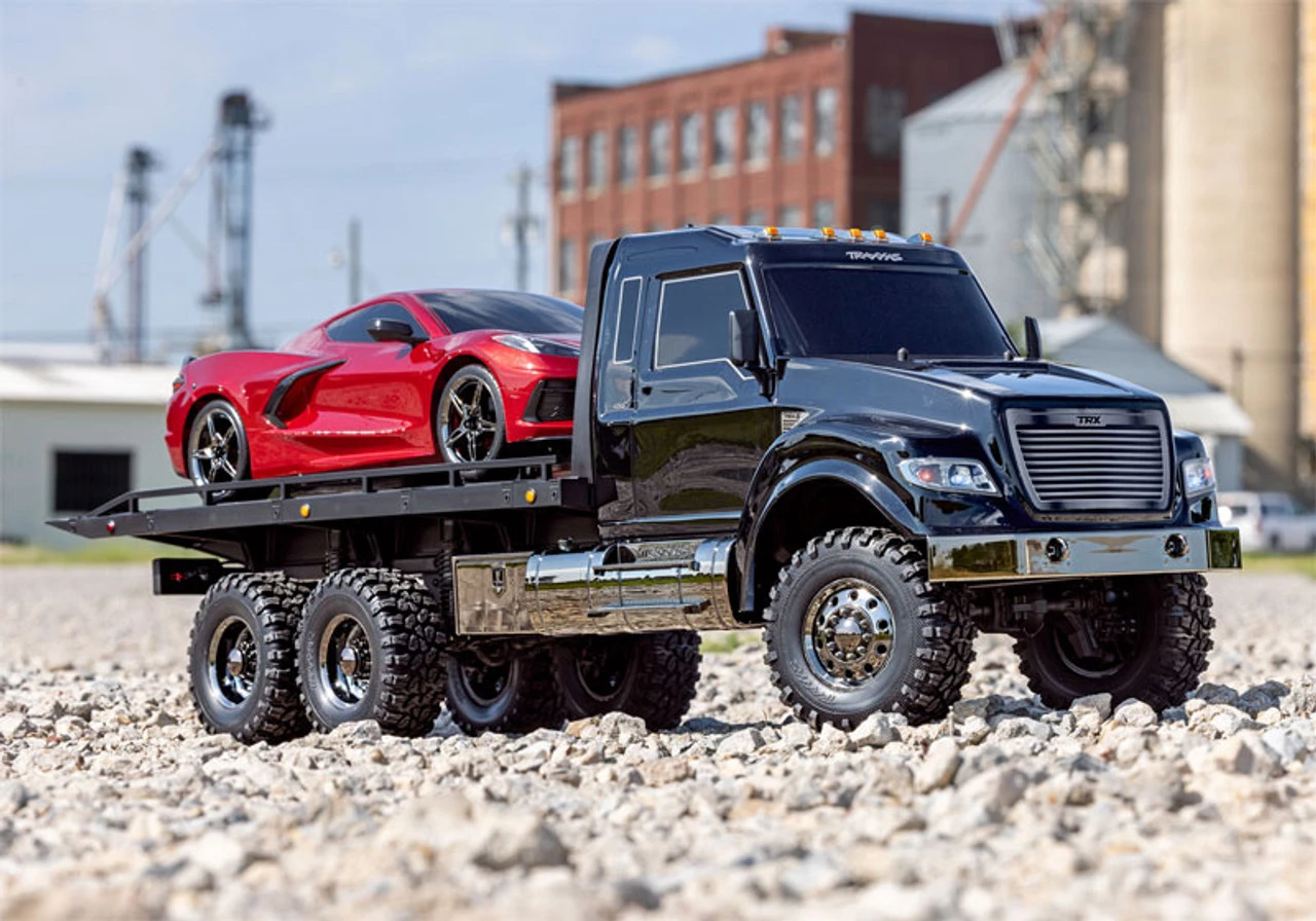 One look at the TRX-6 Ultimate RC Hauler and you’ll know this truck means business. Based on the hugely capable TRX-6 platform, the RC Hauler is the biggest and baddest rig in the TRX lineup. The tough looks are backed up with even tougher performance. The rear bed features adjustable wheel chocks and tie-down bands to haul and display 4-Tec models with style. A highly detailed LED lighting system and black-over-black chrome body accessories give the Hauler a tough, menacing look. The Ultimate RC Hauler is built Traxxas Tough with portal axles, high/low transmission, and T-Lock remote locking differentials. When you’re ready for big-scale RC fun, nothing comes close to the Traxxas Ultimate RC Hauler.