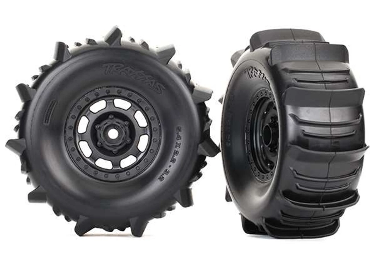 These are the Traxxas Unlimited Desert Racer Paddle Tires on Desert Racer Wheels (2). Add these do your truck for the ultimate experience on the dunes, beach, or snow! The tires come pre-mounted on the wheels with foam inserts installed.
