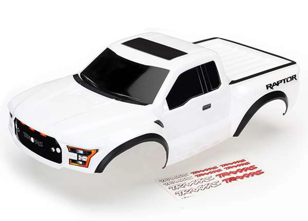 This is the Traxxas White 2017 Ford Raptor Slash Body with Decals. Front grill and mirrors are sold separately.