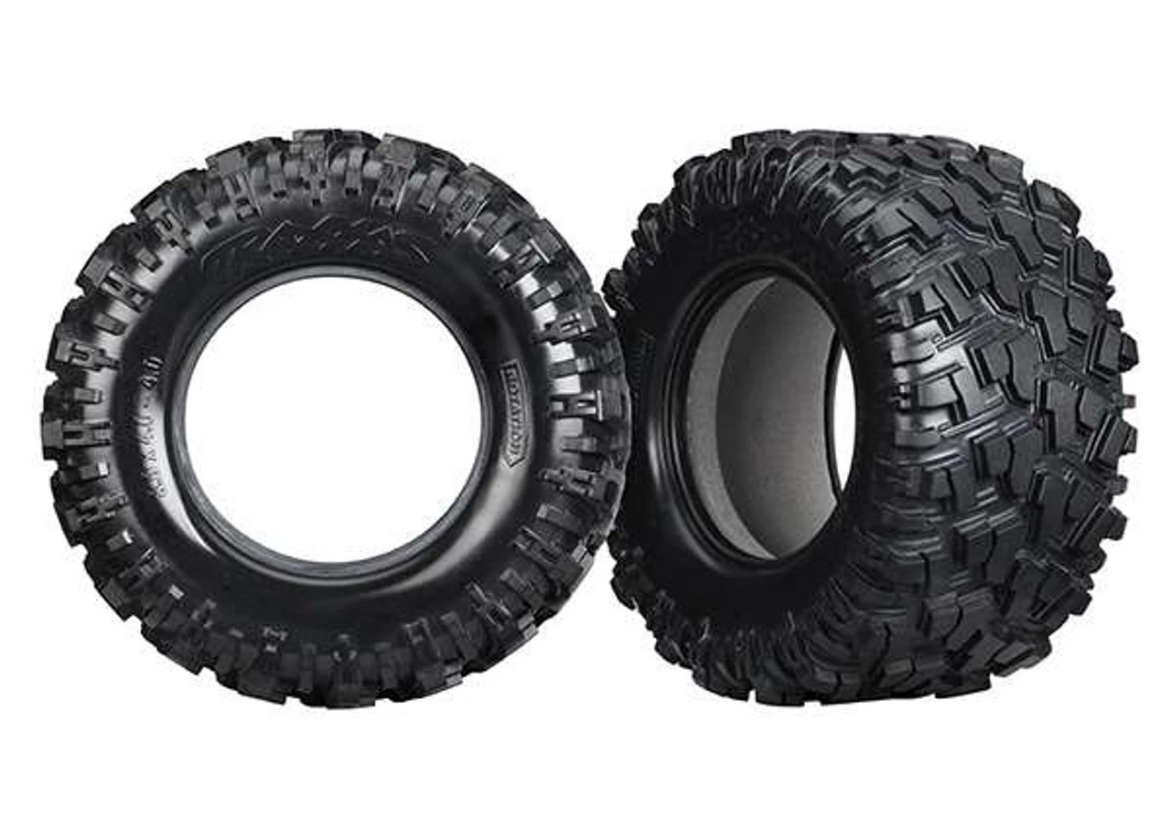 This is a pair of Traxxas X-Maxx 8S-Rated Maxx AT Tires with Foam Inserts. Each package includes two tires and two foam inserts.